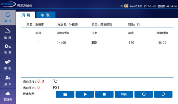 TANK PLUS使用ucos+安卓操作系统 运行稳定可靠,采用7寸液晶彩色触摸屏,触控操作流畅简便。页面实时显示工作状态及温压变化曲线。内置专家方法库,可自行编辑及存储用户方法,也可以从云服务方法库下载其他共享方法。内置COT实时温压异常监控系统能够在任何一个反应罐出现温压异常时自动报警并切断微波从而保护仪器安全。装有内部摄像头可实时监控炉腔内消解罐运行情况。